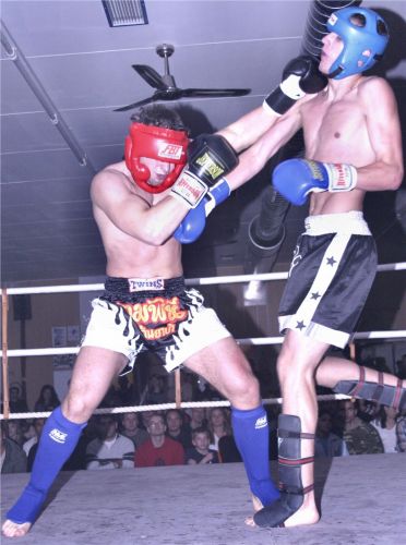 2. Kampf Halbfinale Thaiboxen D-Klasse -75 kg: Alex Foljak (Kamikaze Dojo Nürtingen) vs. Stefan Berg (Saar Gym Saarlouis) - Sieger Alex Foljak durch 3:0 Punkterichterentscheid